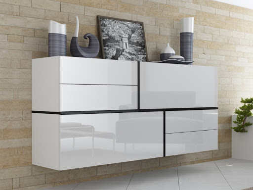 Eine Kommode kann große und kleine Fächer, geschlossene Schubladen, geschlossene Fächer sowie Regale und Vitrinen haben.