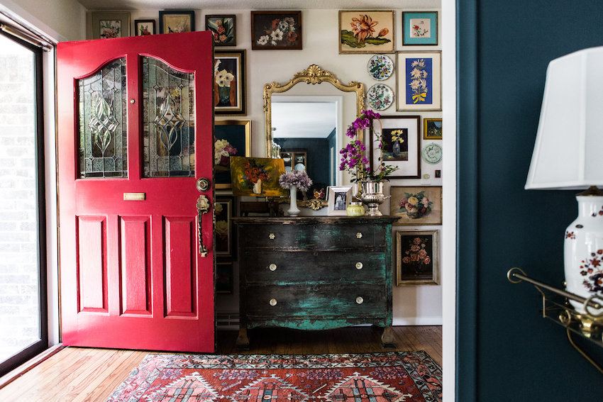 Die Möbelstücke in diesem Flur stammen aus ganz unterschiedlichen Sets, aber zusammen sehen sie mehr als hübsch aus.