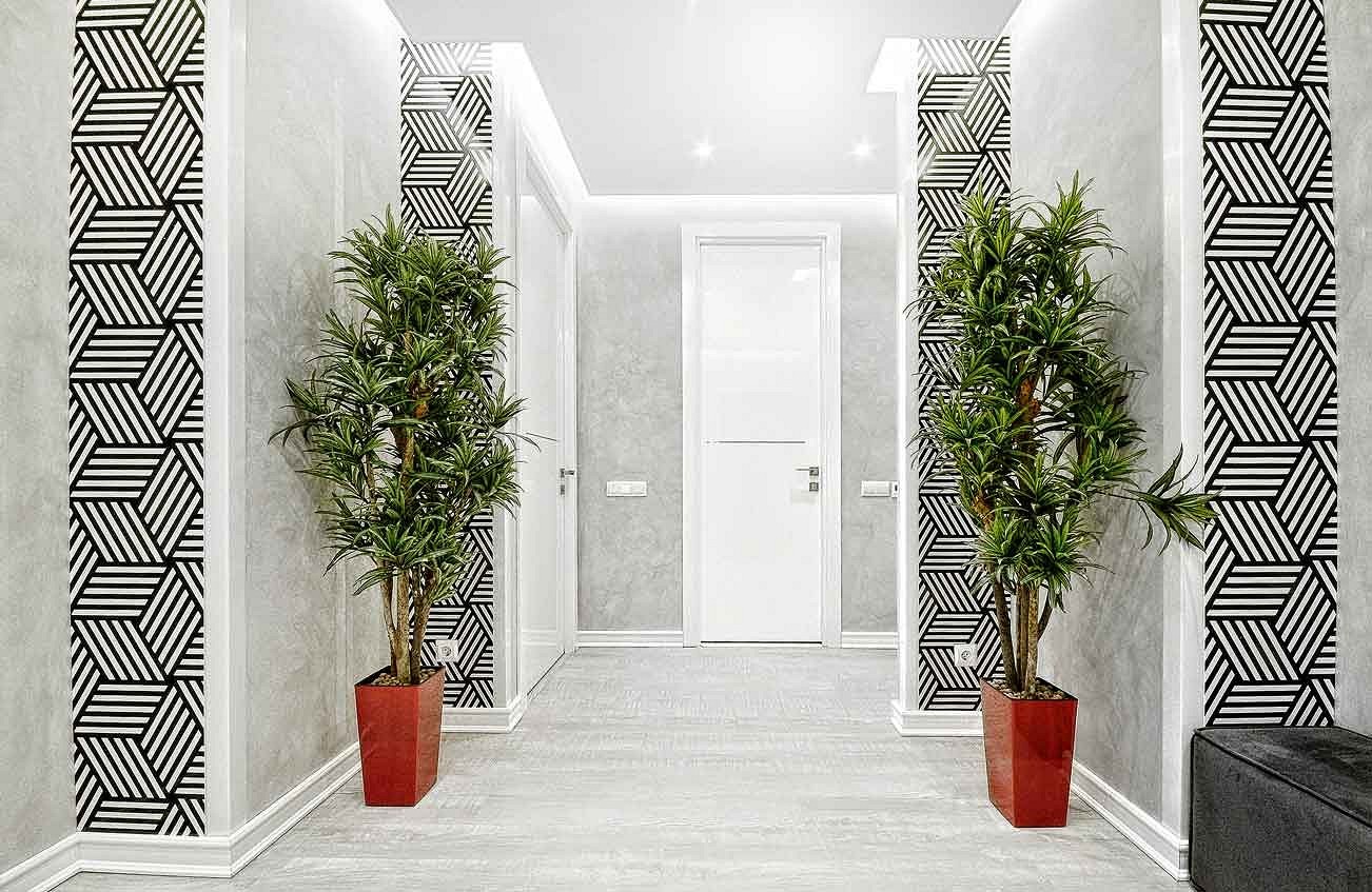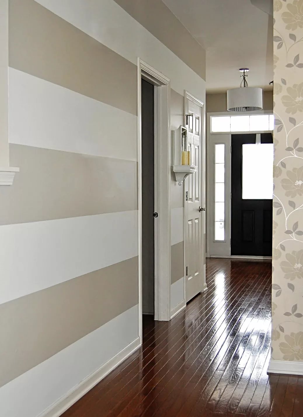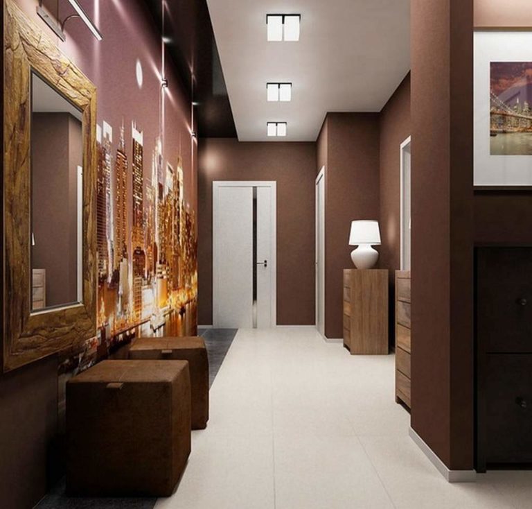 Bei dunklen Farbtönen kann es etwas komplizierter werden, denn hier ist es sehr wichtig, den Raum optisch nicht kleiner zu machen, als er wirklich ist. Wird im Flur eine helle Tür verbaut, kann die Tapete in Braun oder mit Holzdruck gewählt werden. Aber in diesem Fall sollten Sie auf eine gute Beleuchtung achten.