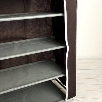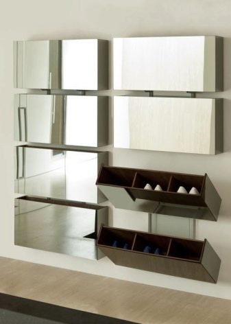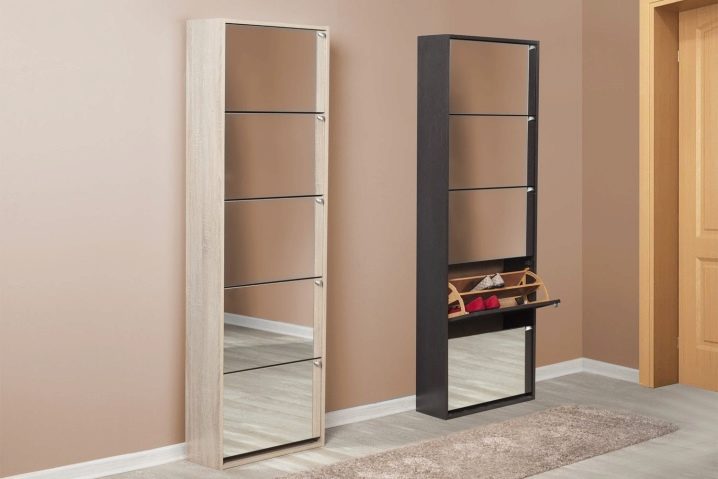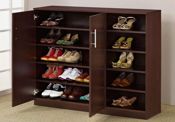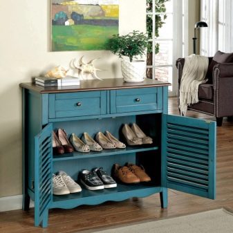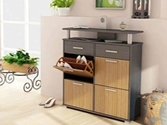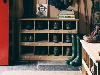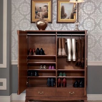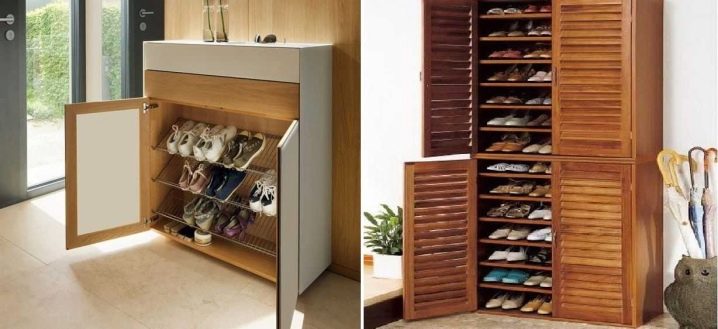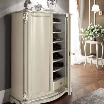 Geschlossene Regale sind sehr funktional, da sie nicht nur Schuhe, sondern auch verschiedene Gegenstände aufbewahren können. Geschlossene Strukturen sind oft mit interessanten Dekorationselementen ausgestattet, die im Innenraum gut aussehen.