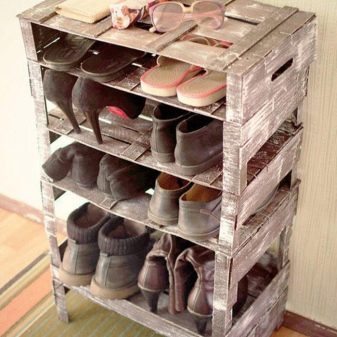 Schuhregale im Flur sind in Russland nicht so verbreitet, aber im Flur eines jeden Bereichs einfach unersetzlich. Sie sind nicht teuer und außerdem kann ein solches Modell leicht unabhängig von jedem verfügbaren Material zusammengebaut werden. Fertige Schuhregale bestehen meistens aus Holz oder Kunststoff.