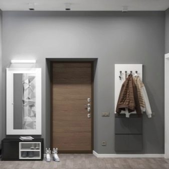 - Minimalismus impliziert Funktionalität, Einfachheit und die Verwendung ungewöhnlicher Formen. Hier werden Sie keine raffinierten Linien sehen - Möbel zeichnen sich meistens durch Strenge und Klarheit aus. Die Geometrie von Möbeln und Einrichtungsgegenständen ist relevant. In diesem Stil des Raumes sehen Sets aus einem Regal, einem Spiegel und einem Kleiderbügel gut aus. Sie sparen Platz und sehen sehr stylisch aus. Alle Varianten von hellen Farbtönen gelten als Hauptfarben der Modelle.