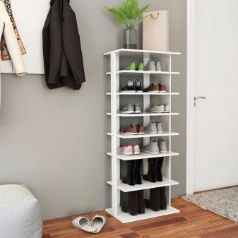 - Die Abmessungen des Regals und seine Konfiguration hängen von der Anzahl der Personen ab, die im Haus leben. Auch die Art der Schuhe, die im Regal gelagert werden, spielt eine Rolle.
