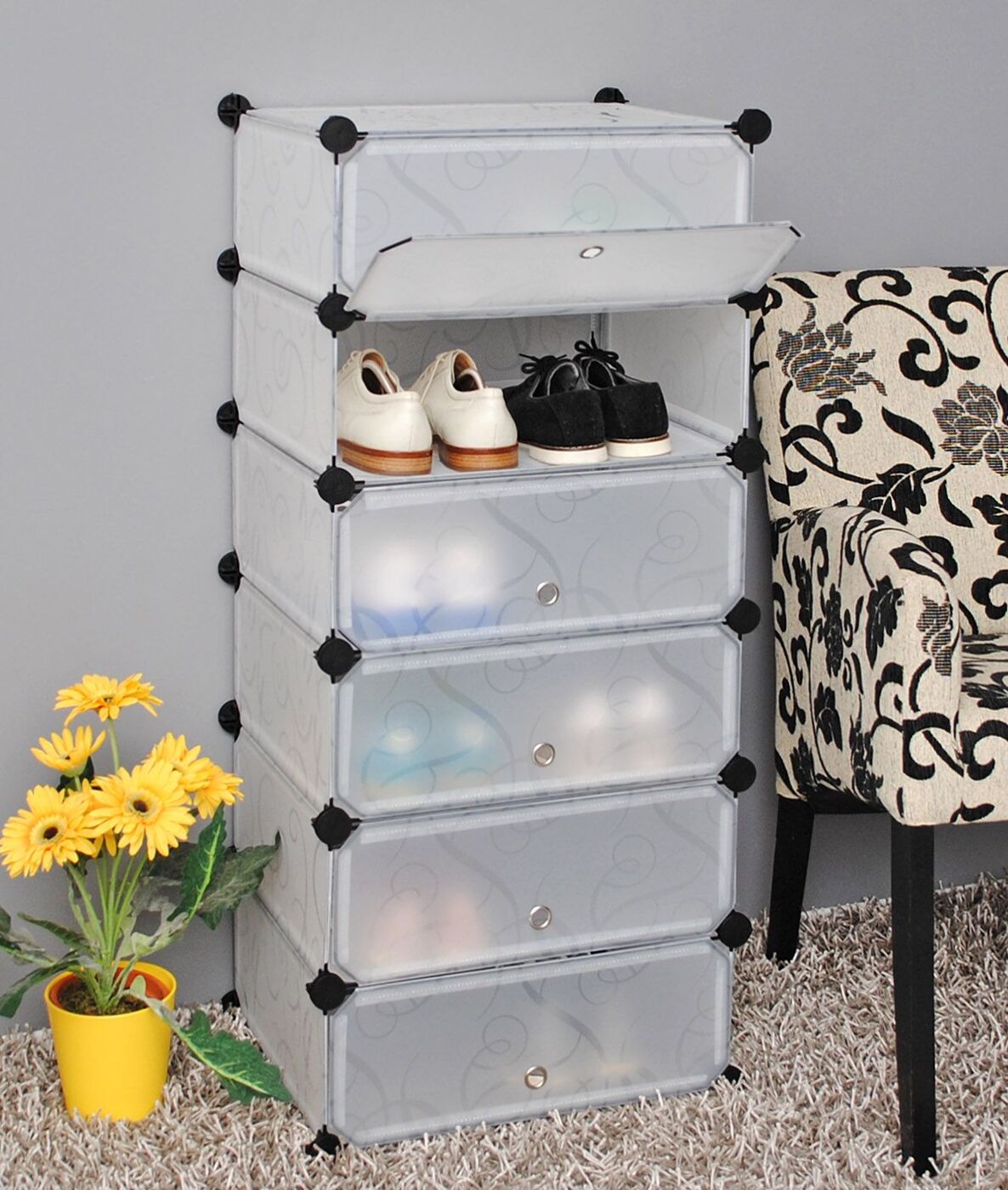 - Geschlossene Designs eignen sich gut, wenn Sie Ihre Schuhe über einen längeren Zeitraum lagern möchten. Saisonale Schuhe werden am besten in offenen Regalen platziert.