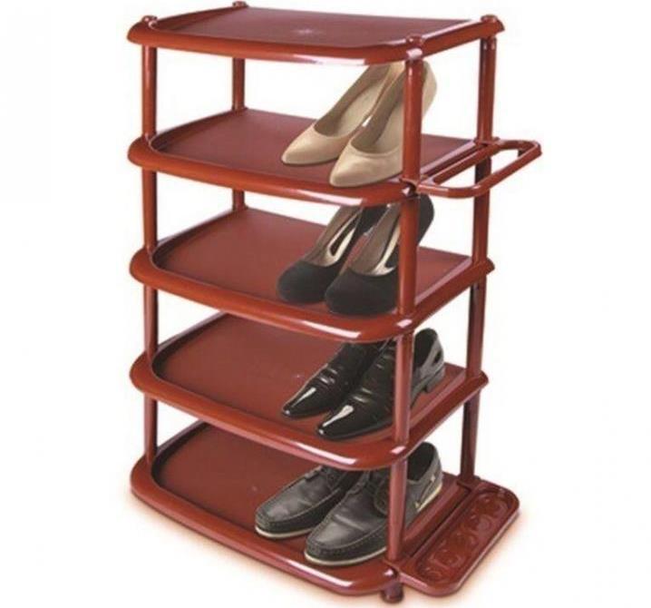 Kunststoffregale sind leicht und einfach zu bewegen. Um ein Schuhregal aus Kunststoff zu reinigen, wischen Sie es einfach mit einem feuchten Tuch ab. Moderner Kunststoff ist sehr langlebig, sodass solche Modelle starken mechanischen Belastungen standhalten. Schwere Belastungen sind jedoch für Kunststoff kontraindiziert, da sich das Material unter solchen Bedingungen schnell verschlechtert.