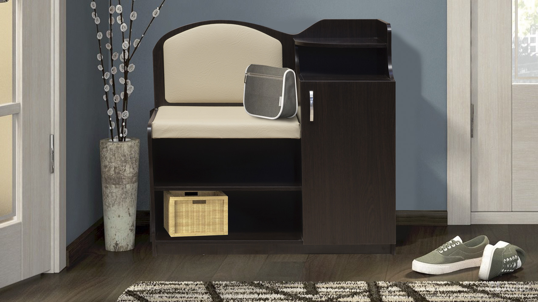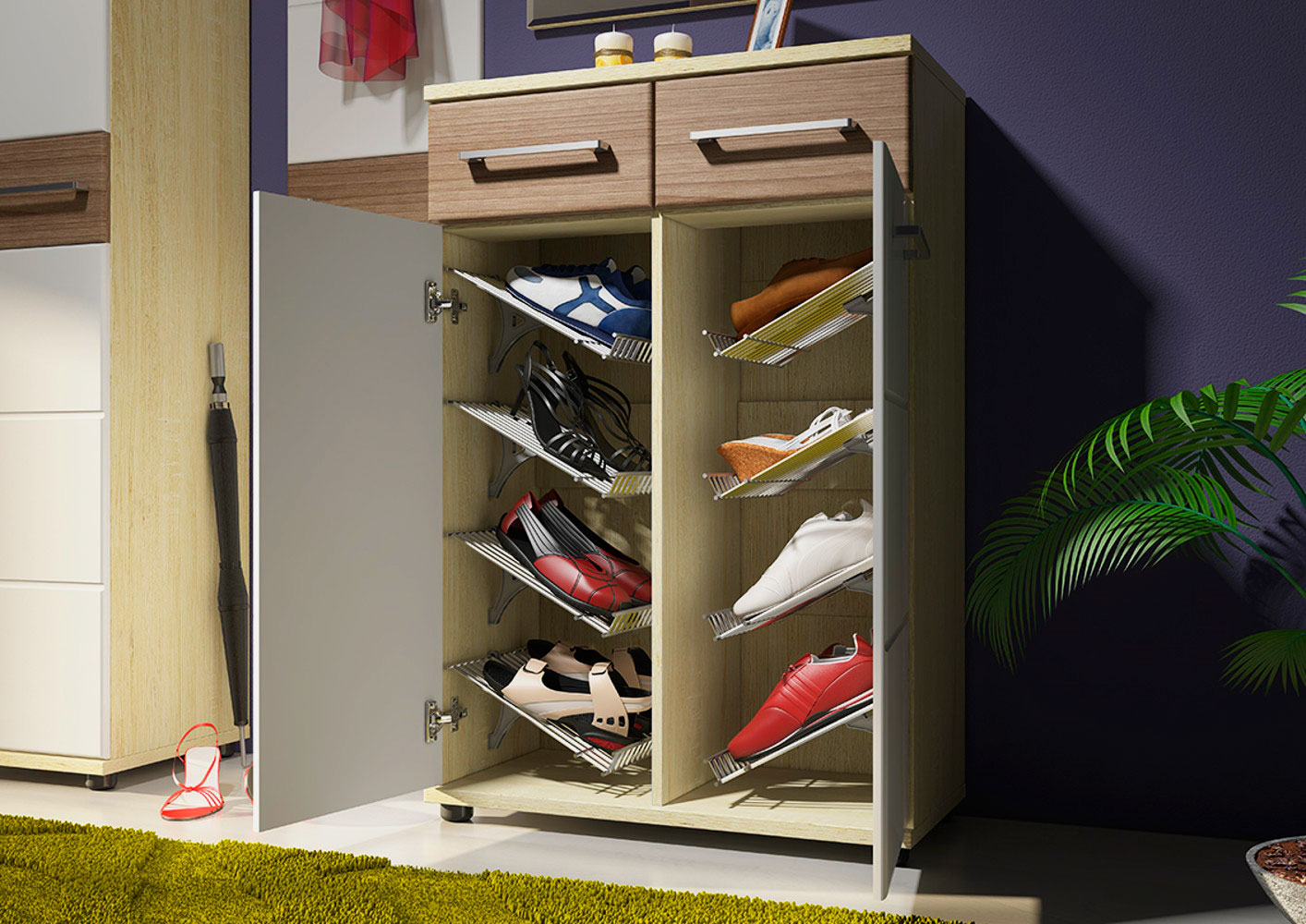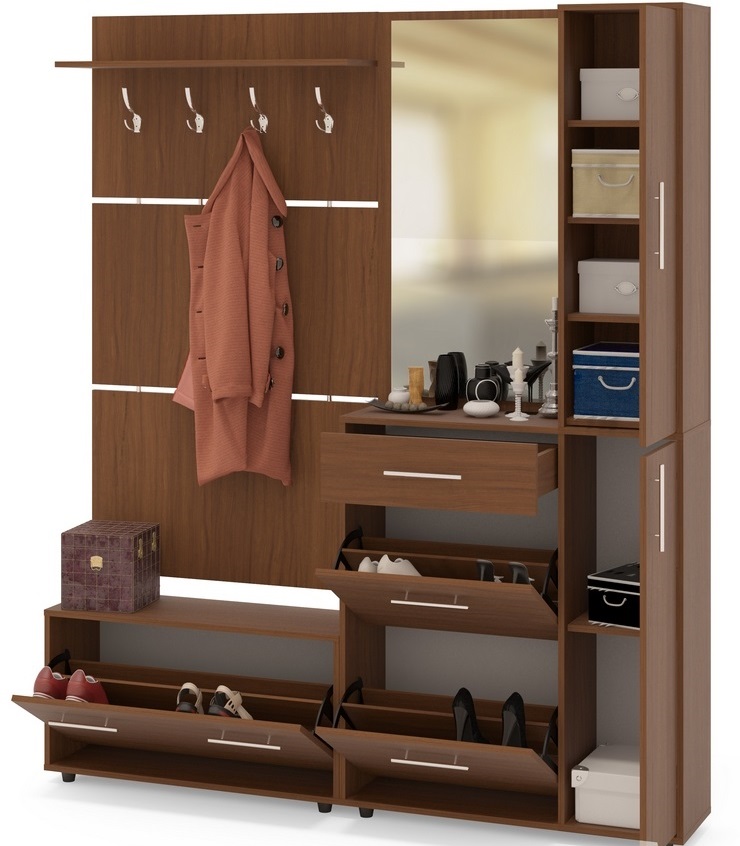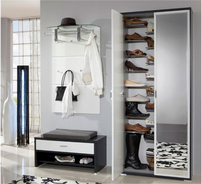 Manchmal sind Schuhregale im allgemeinen Möbelset enthalten. In diesem Fall wird die Auswahl vereinfacht.