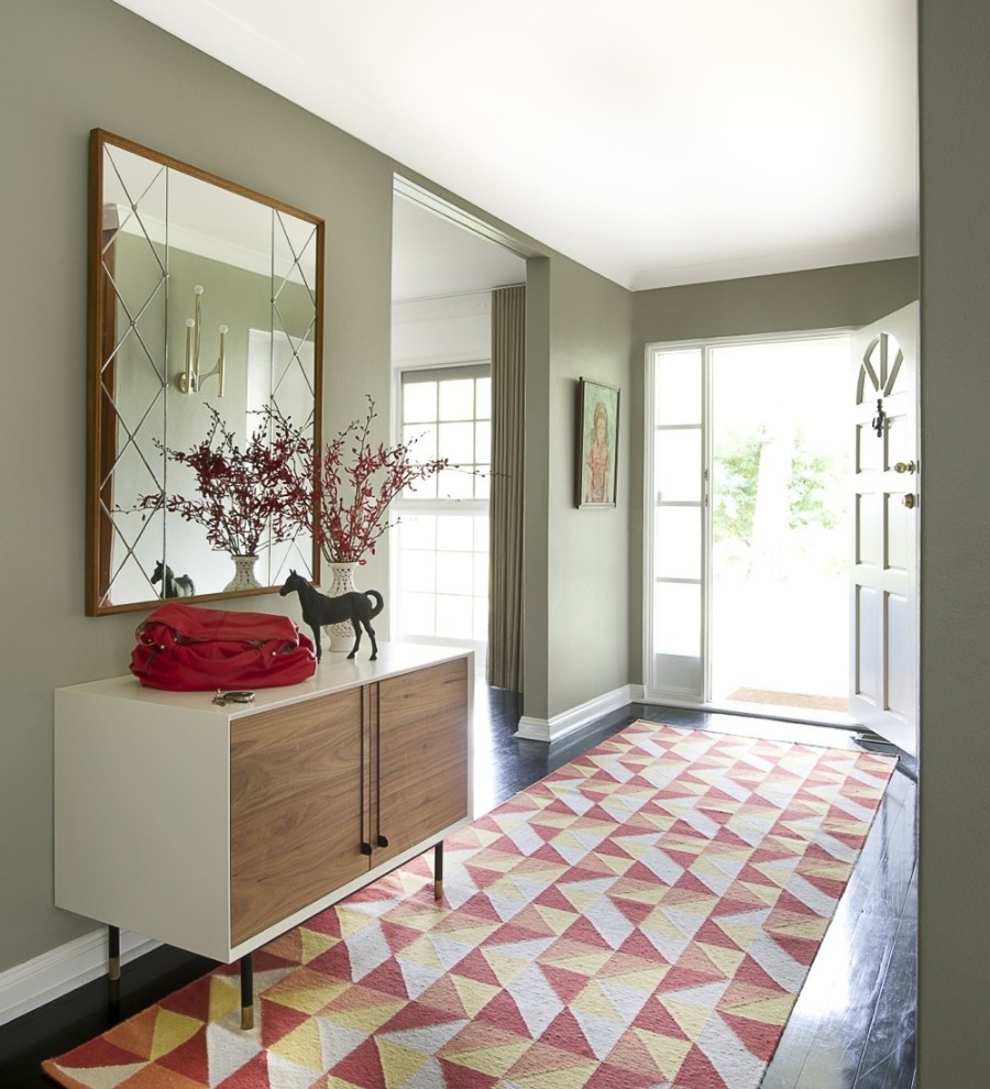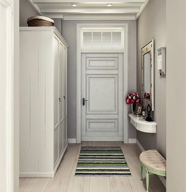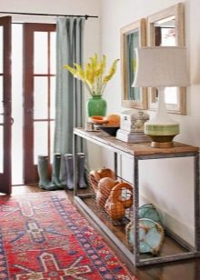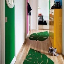 Auch das Design und die Farbe des Teppichs sind wichtig. Es ist wichtig, dass dieser Artikel mit der Einrichtung und Einrichtung des Flurs harmoniert. Es ist ratsam, Farbtöne zu bevorzugen, die das gesamte Farbschema des Flurs dominieren. Manche Hausbesitzer spielen mit Kontrasten. Aber Sie sollten sich bei dieser Entscheidung nicht mitreißen lassen - es ist besser, Akzente an den Wänden und Dekorationsgegenständen zu setzen. Transparente Produkte sind eine Neuheit auf dem Markt.