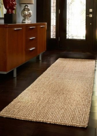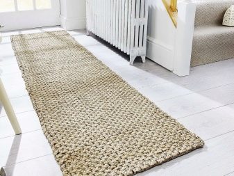 Jute-Teppiche sind praktisch und langlebig, sie ziehen durch ihre Farbe an. Die dominierende Farbpalette ist neutral. So finden Sie problemlos ein stimmiges Modell. Ein solcher Teppich passt gut in jedes Farbschema des Flurs.