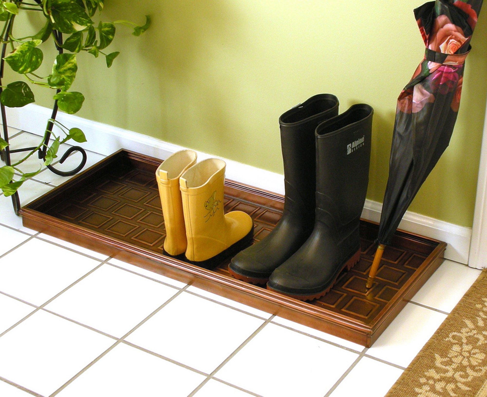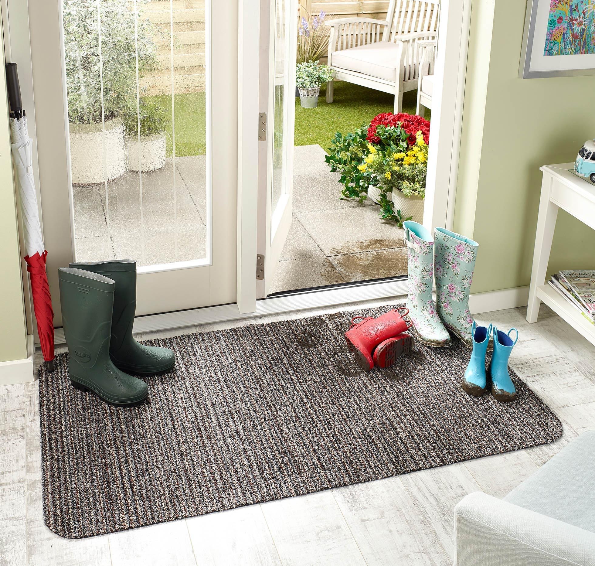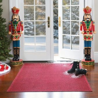 In der Regenzeit sowie bei der Schneeschmelze wird ein schmutzabweisender Teppich mit Stoßfängern zu einem unverzichtbaren Bestandteil des Hauses. Typischerweise bestehen diese Modelle aus Gummi- oder Polymermaterialien, die Feuchtigkeit speichern können. Ihr Zweck besteht darin, Wasser aus den Sohlen von Stiefeln und anderen Schuhen zu sammeln. Besonders relevant ist eine solche Anschaffung in Familien mit kleinen Kindern, die bei jedem Wetter spazieren gehen.