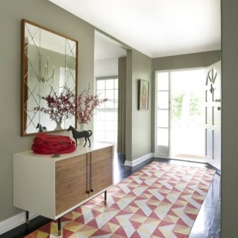 Wenn die ästhetische Seite von grundlegender Bedeutung ist, sollte die Wahl getroffen werden, wobei der Schwerpunkt auf der Farbe und Länge des Flors liegt. Florale und abstrakte Ornamente fügen sich harmonisch in jeden Flur ein.
