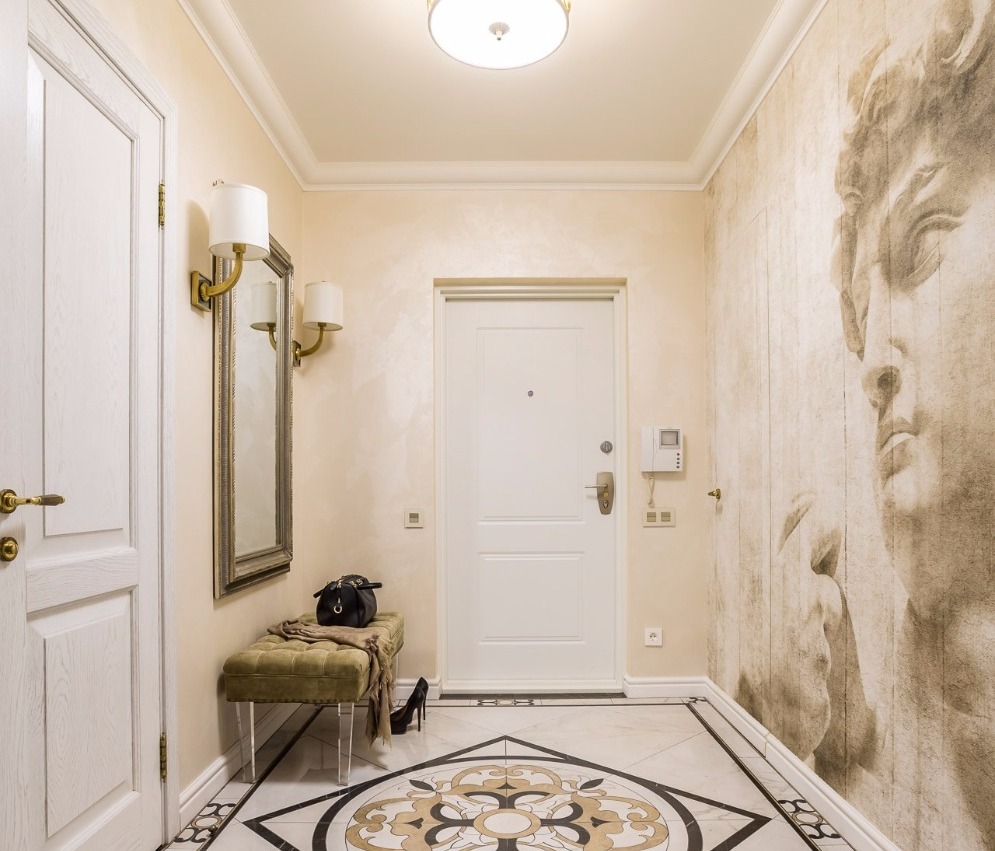 Der Flur ist jedoch der Ort, an dem Staub und Schmutz von der Straße gebracht werden, sodass helle Tapeten verschmutzen können, was ihr wesentlicher Nachteil ist.