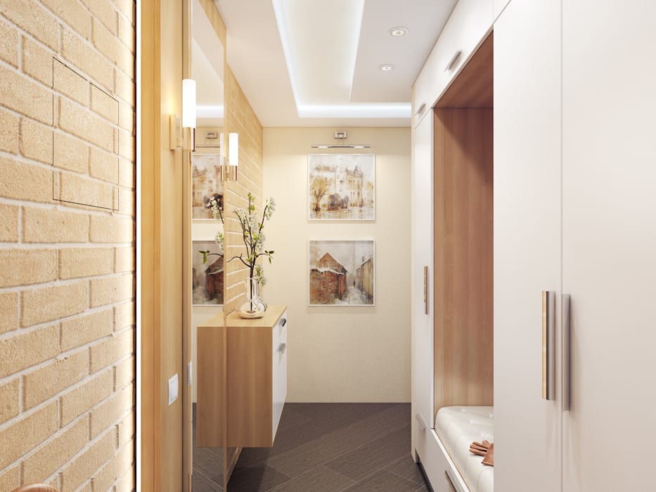- Monochromatisch Der Flur wirkt lakonisch und ist eine gute Grundlage für Design und Dekoration. Auf hellem Hintergrund sehen Spiegel und Möbel außerdem nicht nur hell, sondern auch dunkel gut aus.