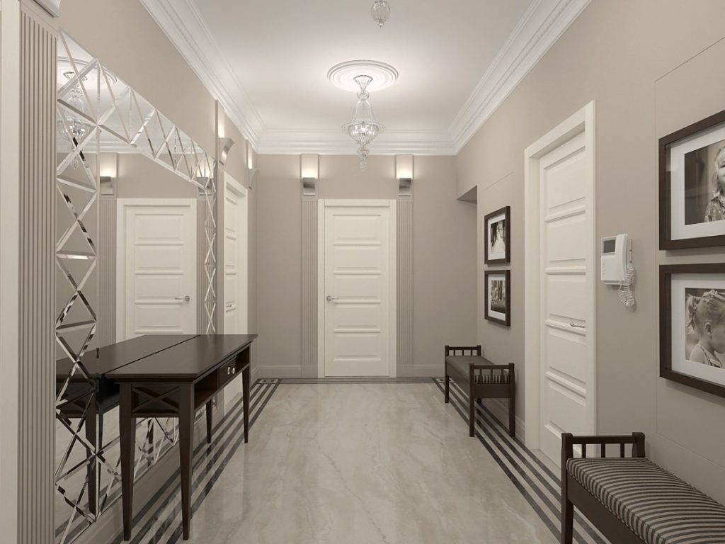 - vertikal Linien dehnen den Raum optisch aus, die Decken wirken höher, können den Flur jedoch in einen tiefen Brunnen verwandeln;