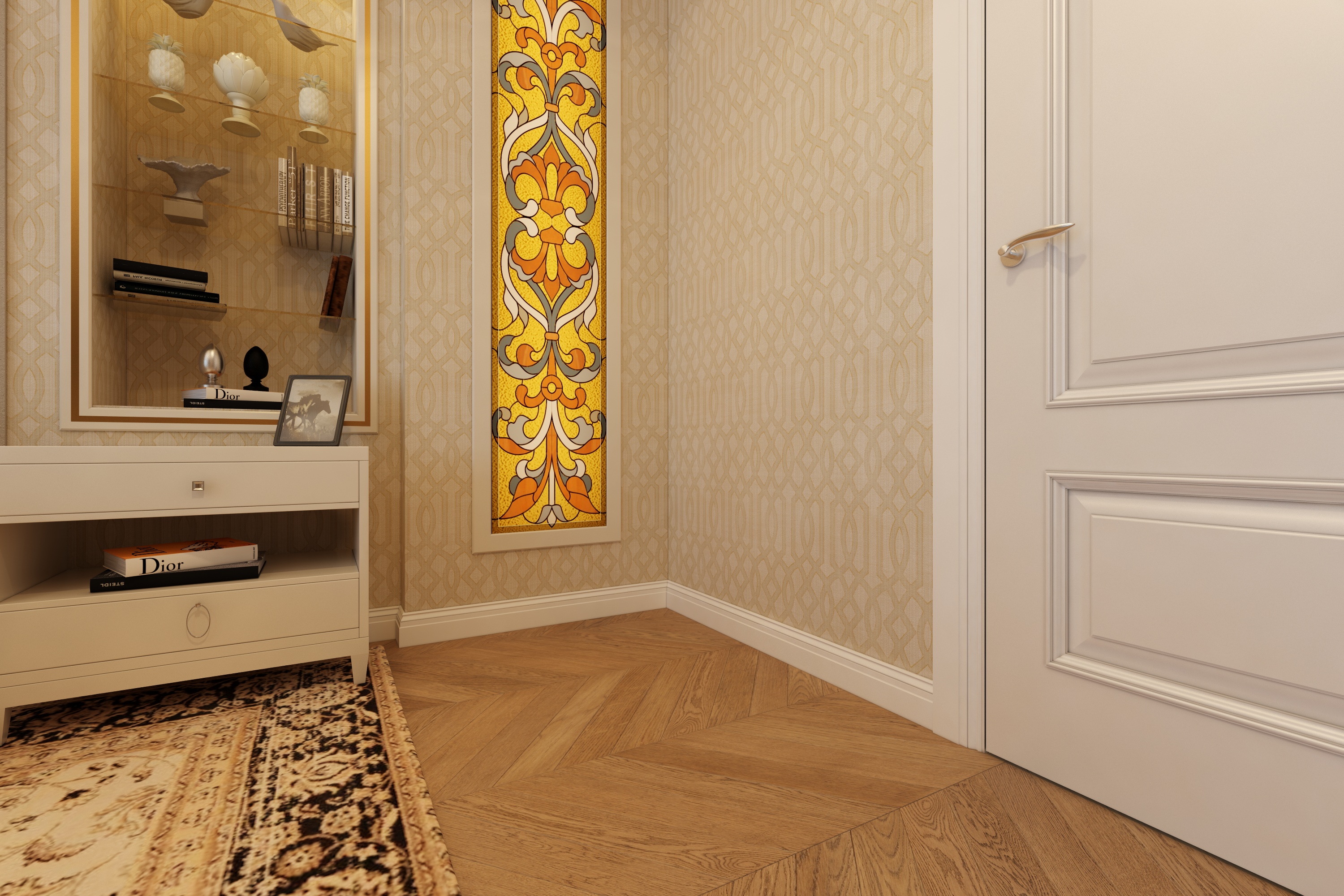 Helle Tapete im Flur