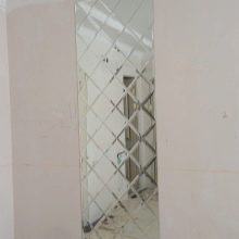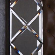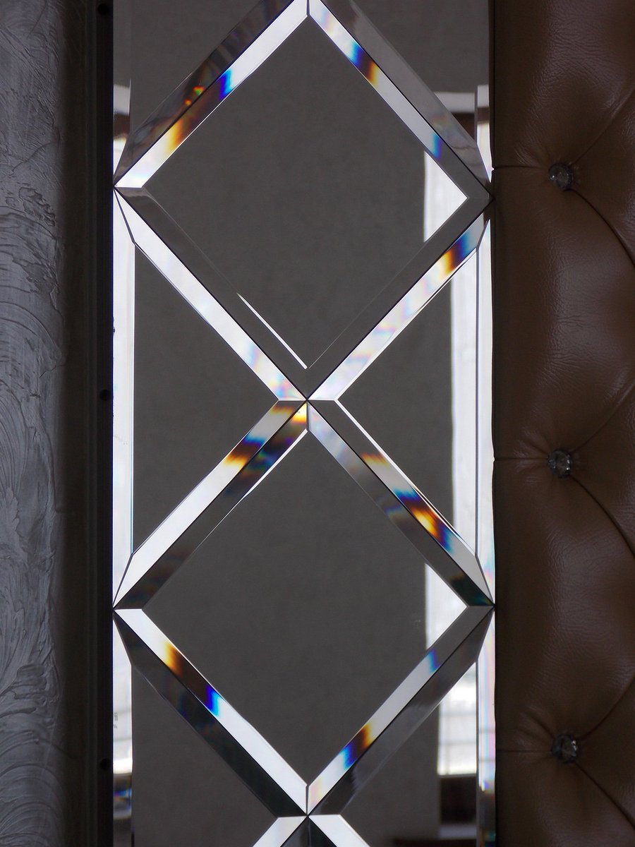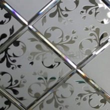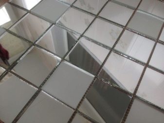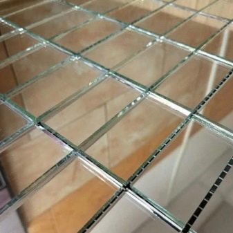 Modifikationen mit einer Facette, dh mit einer Abschrägung der Kante, "spielen" schön. Es ist sicher, sie zu stapeln. Die Verarbeitung erfordert den Einsatz von Schleifmaschinen. Sie können auch Spiegelkacheln verwenden:
