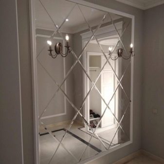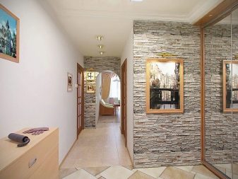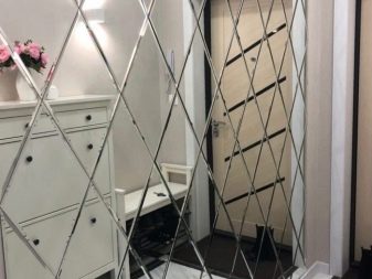 Aber Sie können eine ganze Wand aus solchem Material arrangieren. Es wird sich als sehr attraktiv herausstellen und die reflektierende Wirkung wird zunehmen. Es ist gut, eine solche Struktur gegenüber dem Sitz und dem Schließfach für Dinge zu platzieren.