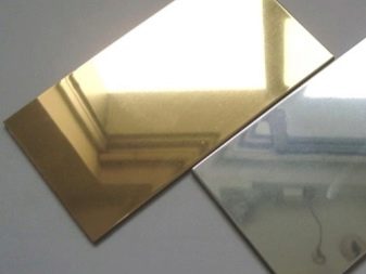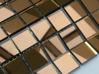 Der Unterschied kann sich aber auch auf die Nuancen der Ausführung beziehen. Klassische Spiegelfliesen haben eine glatte Struktur und ein glänzendes Erscheinungsbild. Seine Fugen sind fast ohne sichtbare Nähte verbunden. Überzogene Produkte ähneln eher Gold oder Silber, obwohl es auch Nachahmungen von Chrom und Bronze gibt. Einige Modelle werden mit künstlicher Korrosion hergestellt.