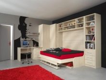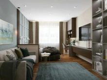 Bei der Gestaltung eines 16 m² großen Schlafzimmer-Wohnzimmers ist es am besten, ein Möbelanordnungsschema unter Berücksichtigung der Abmessungen zu zeichnen, um den ohnehin begrenzten Raum nicht zu überladen. Anstelle von Raumzonen können Sie Transformatorenmöbel aufstellen - dies ist ein Bett, das in einen Schrank oder eine Nische eingebaut ist, ein Sofa, das in den Schrank eingebaut ist. Dies ist im Allgemeinen eine ideale Option, da es Platz für Kleidung, einen Arbeitsplatz, einen Schlafbereich, Regale für Bücher usw.