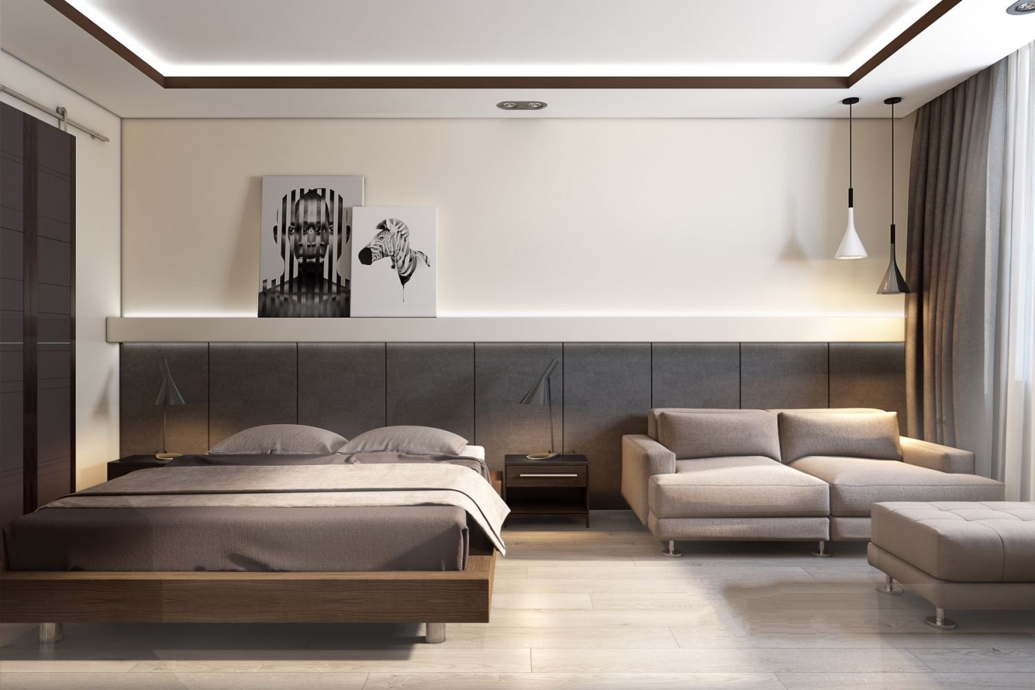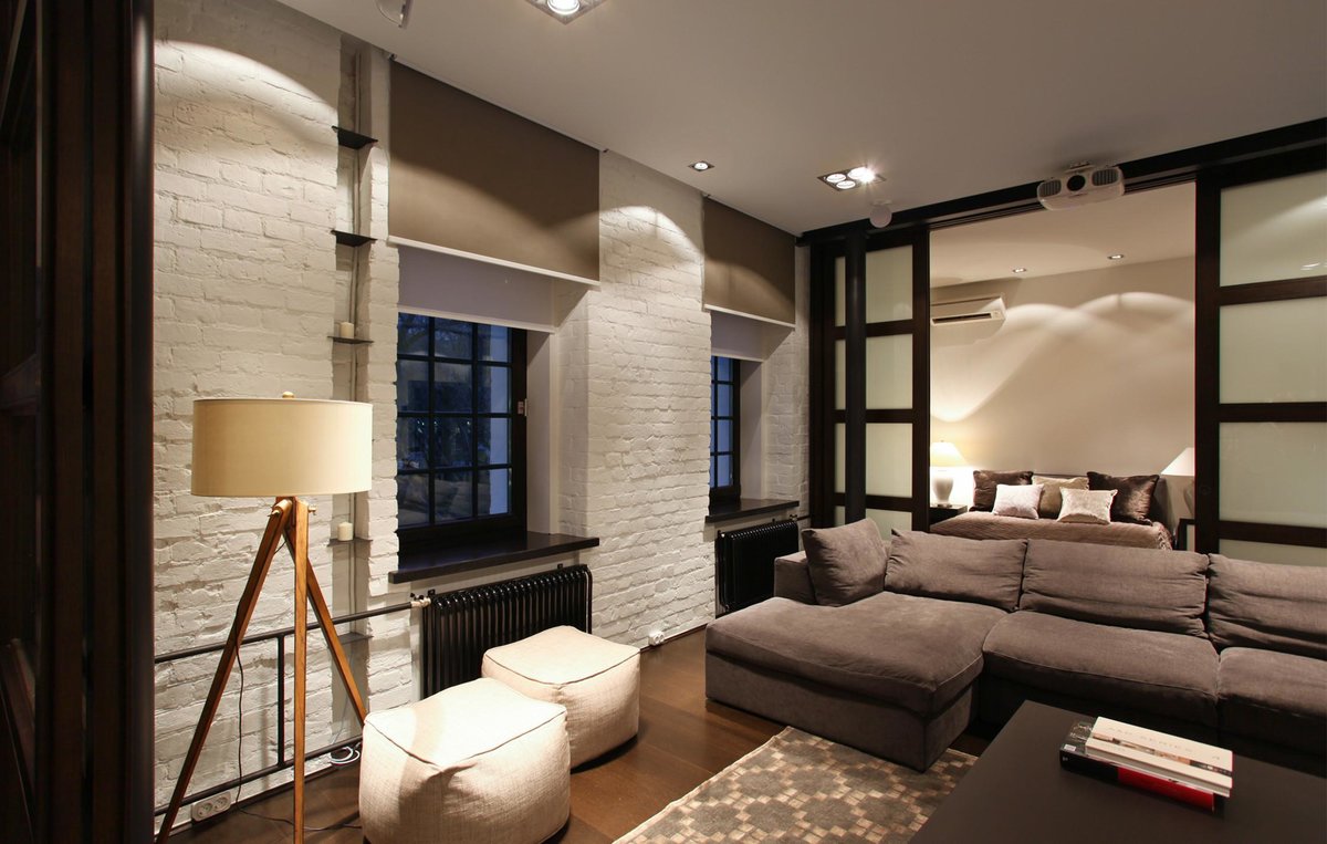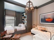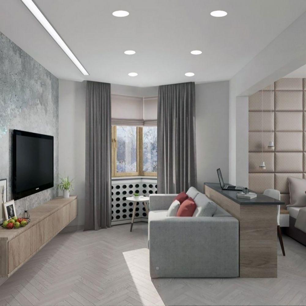 Bei der Beleuchtung eines kleinen Raumes, der gleichzeitig als Wohn- und Schlafzimmer fungiert, kommt kombiniertes Licht zum Einsatz. Ein Kronleuchter an der Decke ist eine unangemessene Lösung des Problems, die die positive Wirkung der geleisteten Arbeit beeinträchtigen kann. Die Einteilung in Zonen erfordert Licht unterschiedlicher Intensität.