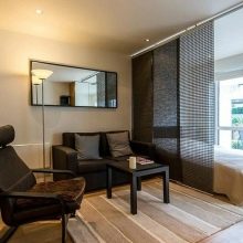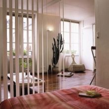 Die Frage der Wahl der Art und Form der Trennwand wird im Voraus vor Beginn der Reparatur entschieden, so dass Sie sich danach nicht mit Änderungen befassen müssen. Mobile Trennwände können preisgünstig sein, zum Beispiel Rollos, japanische Bildschirme, vertikale Jalousien, wodurch sie leicht entfernt, ihren Standort geändert und sogar vollständig entfernt werden können.