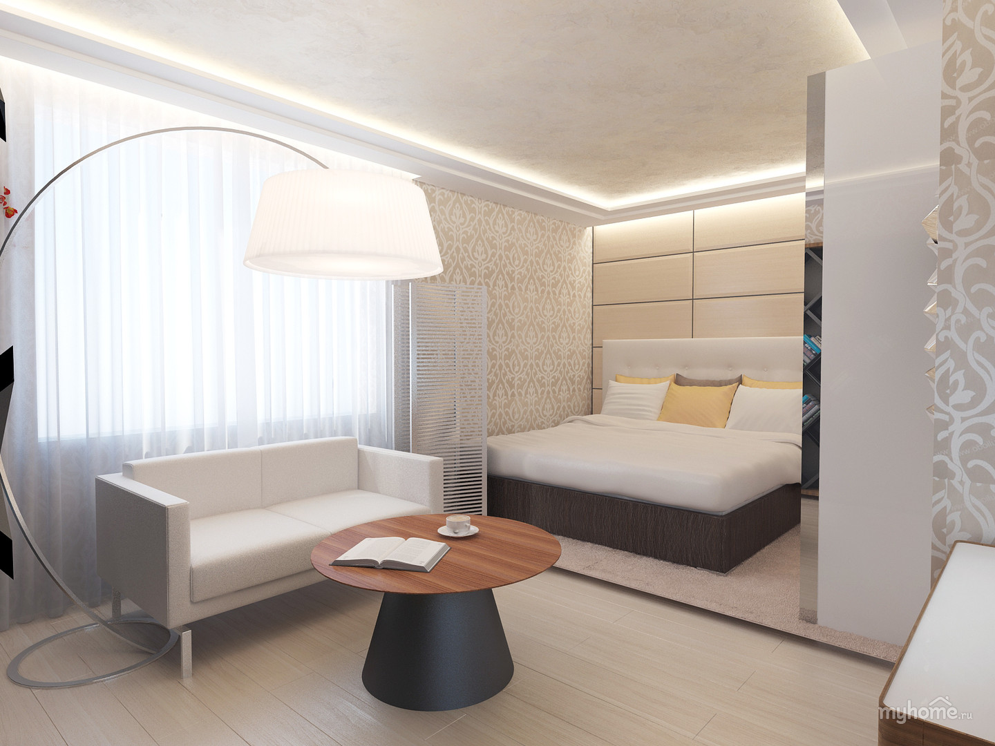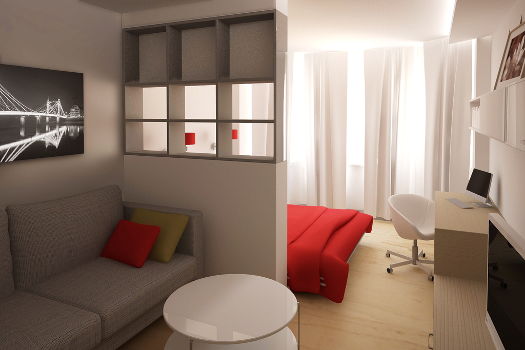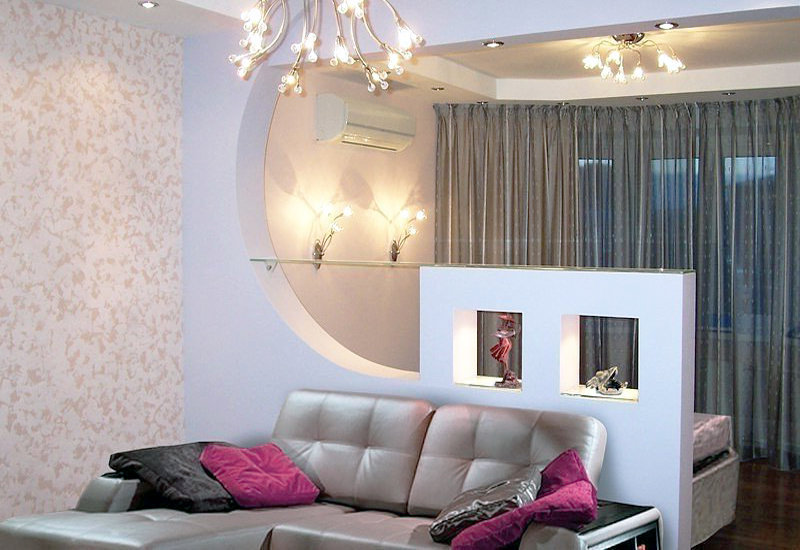 Die Zonierung von Einzimmerwohnungen ist nicht so schwierig, wie es auf den ersten Blick erscheinen mag. Die Notwendigkeit dazu entsteht, wenn den Bewohnern zu große und unbequeme Platzverhältnisse zur Verfügung stehen oder im Gegenteil begrenzt und beengt sind.