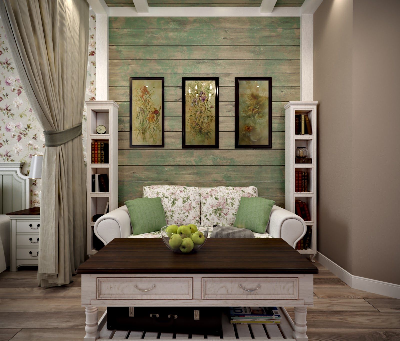 Facettenreicher und vielseitiger Stil, bevorzugt natürliche Farben und Schattierungen. Es unterscheidet sich vom Land in einem ruhigeren Pastellbereich, in dem beige-graue und braune Farben mit seltenen Flecken von hellen Pflanzentönen vorherrschen. Als Akzente kommen Lavendel-, Marine- sowie Gelb- und Rosatöne zum Einsatz. Eine Wand mit einem dekorativen oder funktionierenden Kamin sieht perfekt aus, in einer Stadtwohnung wird es ein elektrisches Modell sein. Die Provence "liebt" künstlerische Möbel mit geschwungenen Formen.