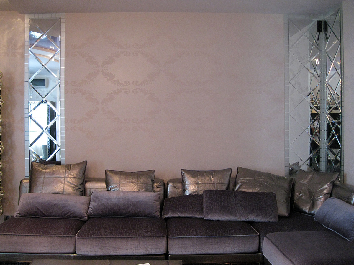Strukturierte Möbel und Spiegelflächen, seltene Einschlüsse von Akzentstücken - eine Statuette, fotografische Tafeln in Baguettes an der Wand usw. können als Dekor dienen.