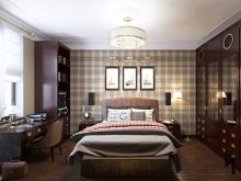 - Einige der stärkeren Geschlechter werden das Arrangement im englischen Stil mögen. In diesem Fall wird ein Ledersofa als Liegeplatz verwendet. Für den Arbeitsbereich kaufen sie einen Eichentisch, einen massiven Sessel. Manchmal wird die Bürofläche durch eine kleine Bibliothek ergänzt.