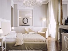 Da er sich in direkter Lichtstromrichtung unterscheidet, ist es ratsamer, ihn mit gleichem Abstand zwischen den Lampen zu platzieren. Andernfalls werden einige Ecken des Raumes abgedunkelt. Je nach Inneneinrichtung können Sie zusätzlich die Regalböden, die Umrandungen des Schminktisches hervorheben. Manchmal wird zusätzlich zur Deckenbeleuchtung ein Schlafplatz im Kopfteilbereich an den Seiten beleuchtet. Es wird optisch durch die Beleuchtung von Gipskartonelementen von abgehängten Deckenkonstruktionen abgegrenzt.