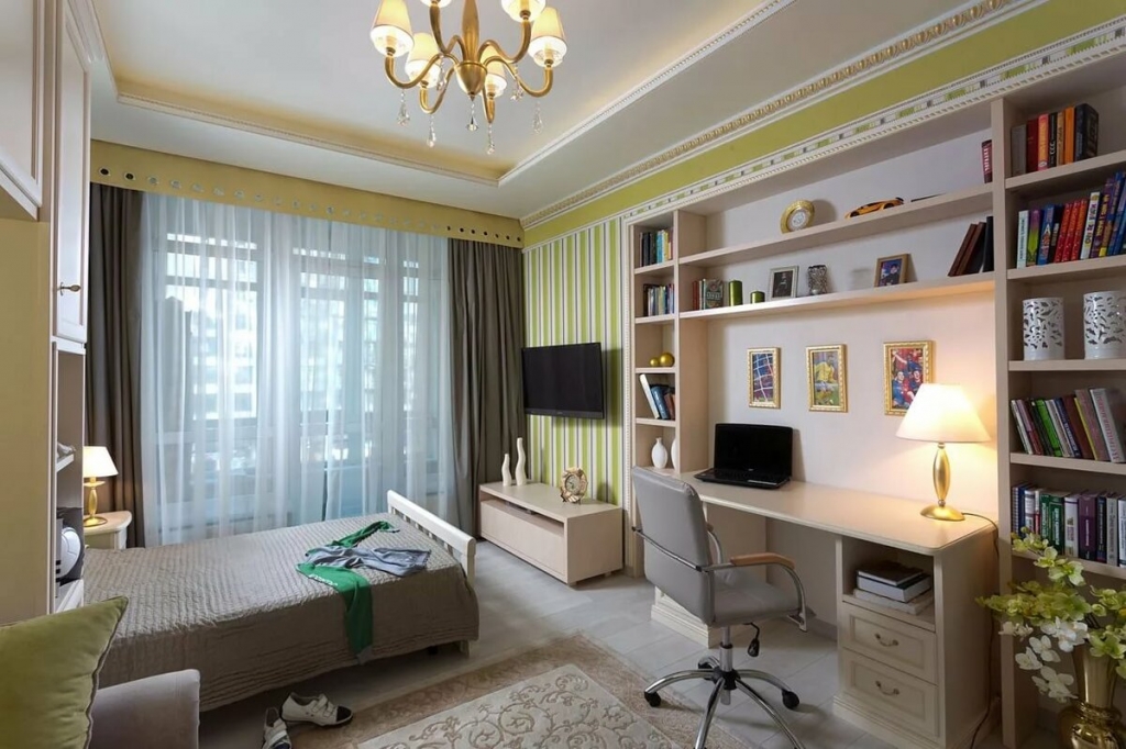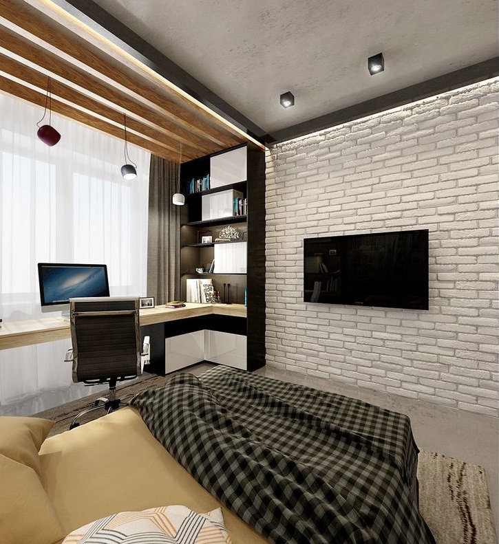 - Wenn das Zimmer groß ist, kann es im skandinavischen Stil oder der aktuell angesagten Loft-Richtung ausgestattet werden.