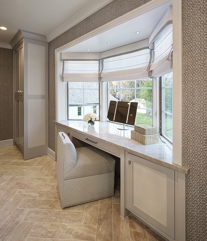 Ein Erkerfenster ist eine ausgezeichnete Lösung, um einen Arbeitsbereich mit vollem Tageslicht zu schaffen. Je nach Form und Größe der Erkerbank können Sie hier nicht nur einen Schreibtisch, sondern auch ein Regal, Schränke und eine Mini-Bibliothek platzieren.