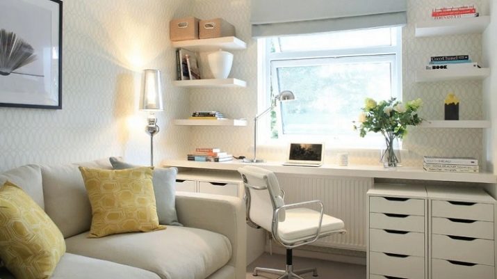 Wenn kein Platz zum Platzieren von zwei Zonen vorhanden ist, werden manchmal sogar Fensterbänke verwendet. Sie können zu Arbeitsflächen oder Schreibtischen werden.
