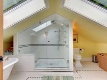 Wenn geplant ist, ein Badezimmer im Dachgeschoss zu platzieren, müssen Sie auf die Einrichtung eines modernen Badezimmers achten. Dadurch wird der Raum komfortabler. Bei der Auswahl eines Platzes für eine Dusche und eine Toilette müssen Sie die Besonderheiten der Lage der darunter liegenden Räume berücksichtigen.