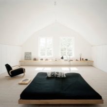 Ein weiterer wichtiger Punkt bei der Einrichtung eines Dachbodens ist die Auswahl und Installation von Möbeln. Vermeiden Sie es, zu viele unnötige Gegenstände in einem kleinen Schlafzimmer zu verwenden. Es reicht aus, dort ein Bett, mehrere Nachttische und ein praktisches Aufbewahrungssystem zu installieren. Wenn genügend Freiraum im Raum vorhanden ist, können Sie dort auch ein paar Sessel aufstellen, sowie einen Platz für Arbeit oder Kreativität einrichten.
