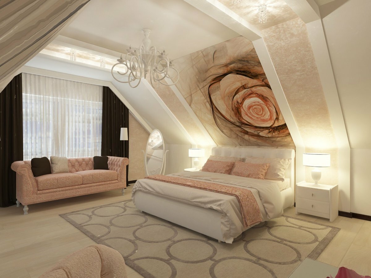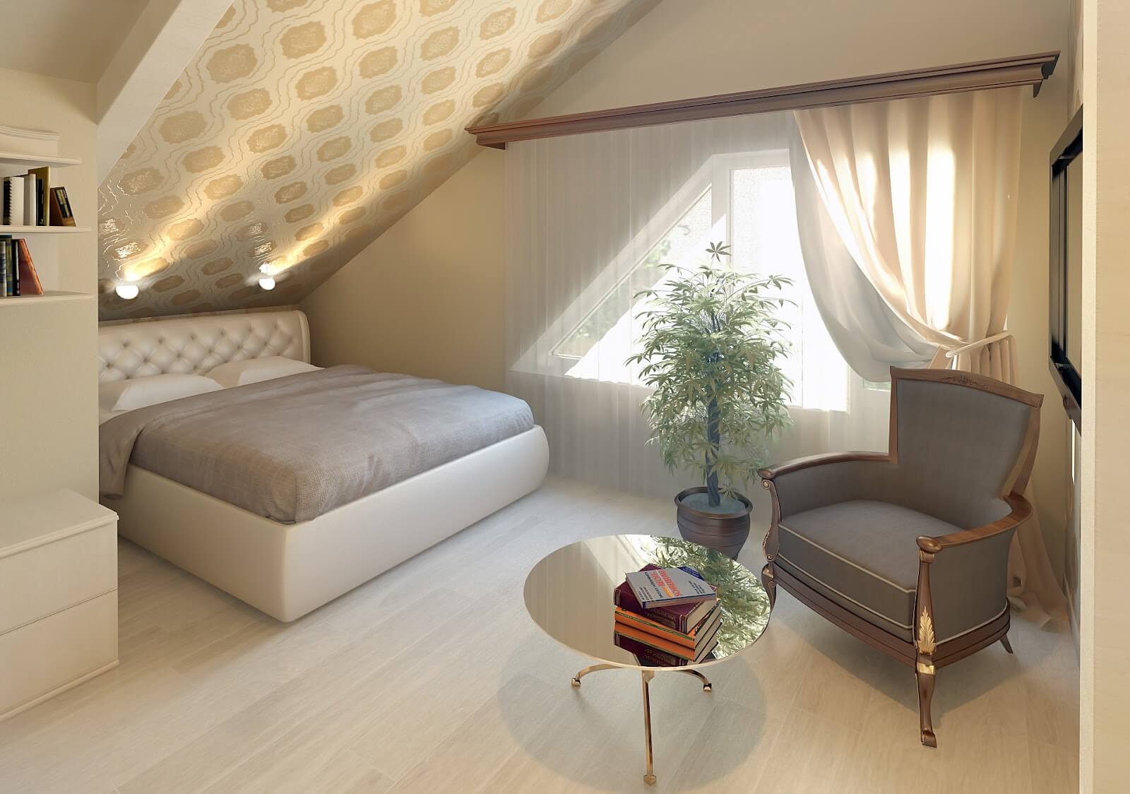 Das Dachgeschoss kann im orientalischen, skandinavischen, klassischen oder anderen Stil eingerichtet werden. Wenn Sie alles richtig machen, wählen Sie kompakte und bequeme Möbel für die Raumgestaltung. Das Wohnen in einem solchen Raum wird so komfortabel wie in den unteren Etagen.