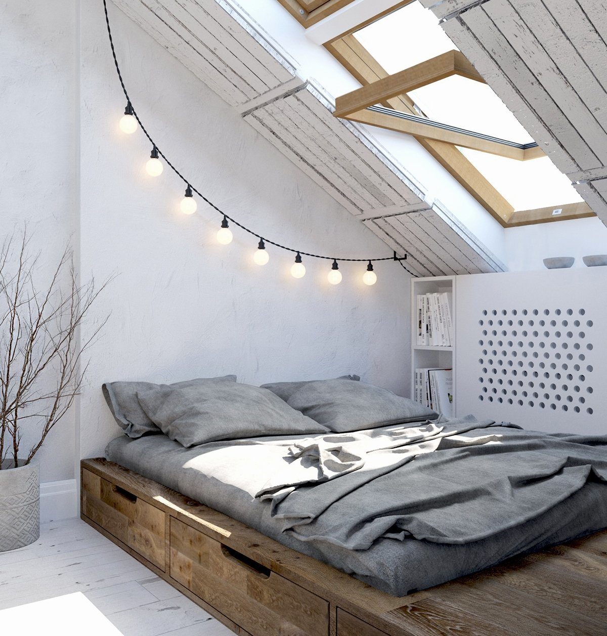 Der freie Platz auf dem Dachboden kann nicht nur zum Verstauen genutzt werden. Ein Dachboden kann der perfekte Ort für ein gemütliches und modernes Schlafzimmer sein.