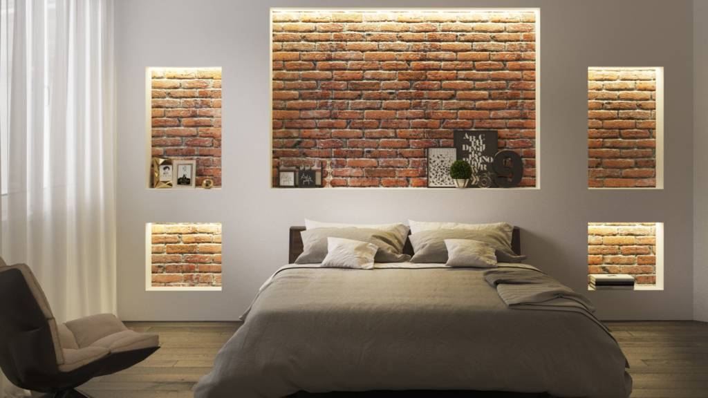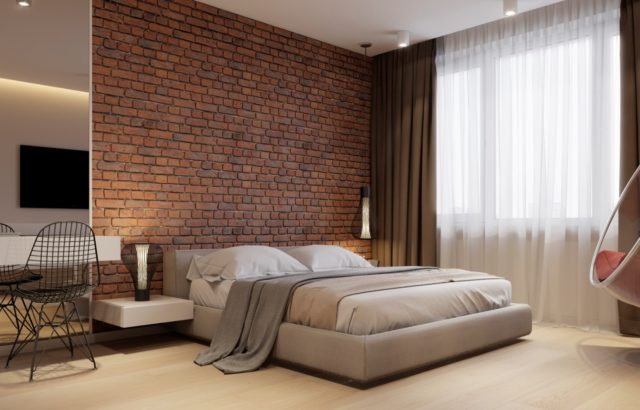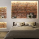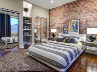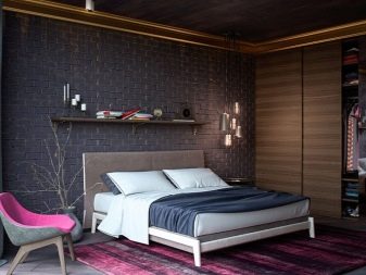 Eine solche dekorative Beschichtung gilt nicht nur als schön, sondern auch als praktisch. Es ist möglich, Ziegel im Schlafzimmer auf unterschiedliche Weise zu verwenden. Aber zuerst muss entschieden werden, wie viele Seiten auf diese Weise fertig werden.