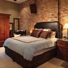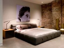 Eine solche dekorative Wand im Schlafzimmer verleiht dem Design Originalität und maximale Ausdruckskraft. Darüber hinaus ist es überhaupt nicht erforderlich, dass die Struktur tatsächlich aus Ziegeln besteht. Tatsächlich wird heute eine große Menge an Baumaterialien hergestellt, mit denen Sie schöne Imitationen von Ziegelbeschichtungen erstellen können. In diesem Fall können Sie problemlos Produkte der gewünschten Farbe, Dicke und Größe auswählen.