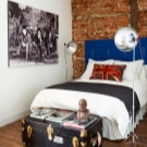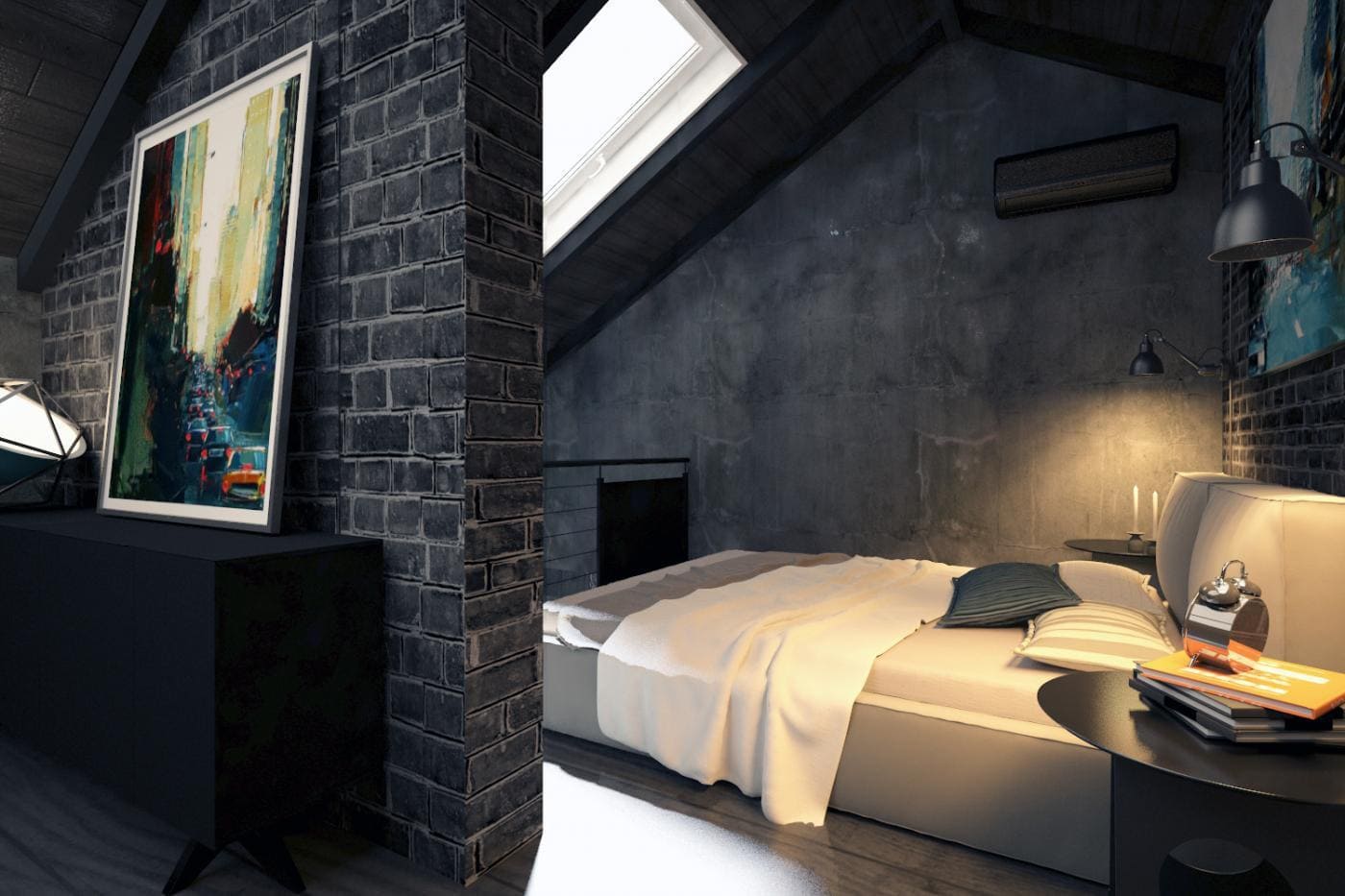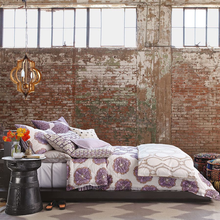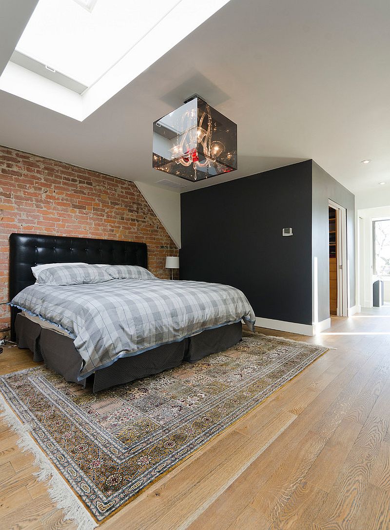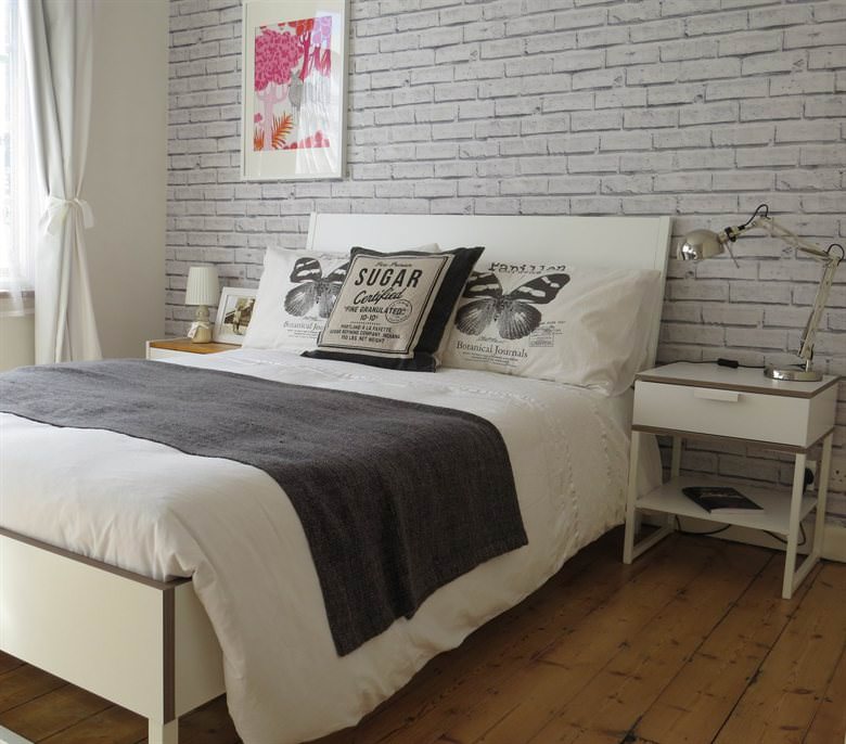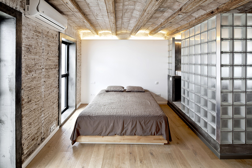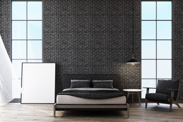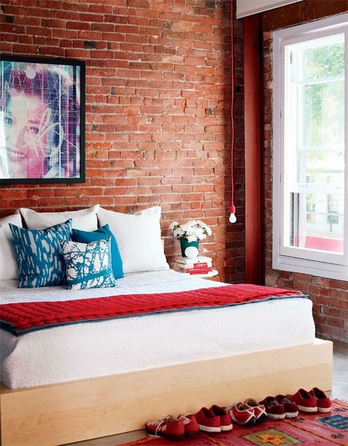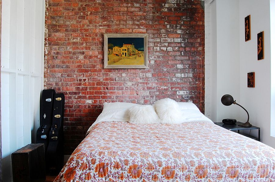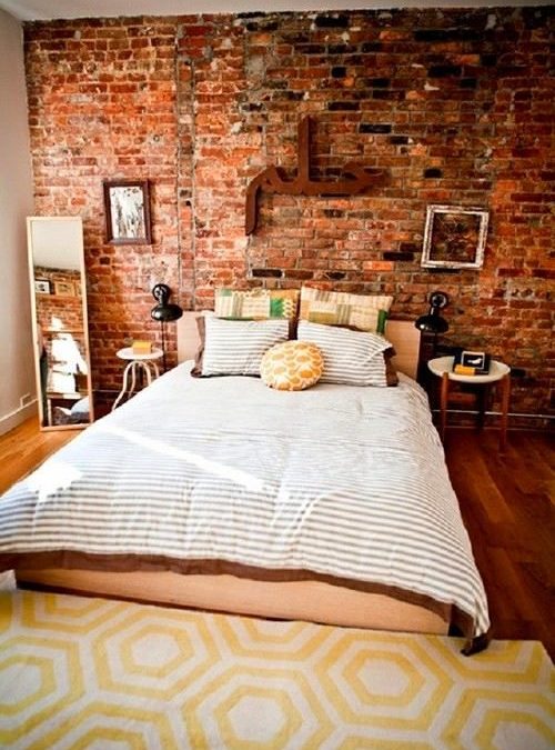 Backsteinmauer im Inneren des Schlafzimmers