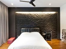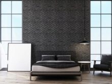 Bei der Dekoration von Innenräumen in einem modernen Stil wird oft Mauerwerk verwendet. Es dient als dekorative Struktur, die sich perfekt in das Innere des Schlafzimmers einfügt. Oft wirken solche Beschichtungen als helle und interessante Akzente im Design.