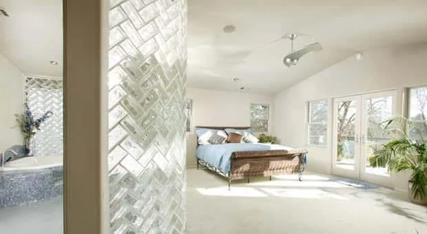 - Glasbausteine, Fliesen. Ziegelähnliche Fliesen gelten als ein ziemlich beliebtes Material. Aufgrund seiner Hauptmerkmale wird es oft mit Feinsteinzeug verglichen. Mit dieser Basis können Sie alle Unregelmäßigkeiten auf der Oberfläche der Wände verbergen. Es ist jedoch auch besser, die Verlegung solcher Fliesen Profis anzuvertrauen. Denken Sie daran, dass die Oberfläche, auf der das Material verlegt wird, vollständig geschützt sein muss, es dürfen nicht einmal kleine Reste von alter Farbe, Klebstoff oder Tünche darauf sein. Die Struktur muss sorgfältig gereinigt werden. Sonst fällt das Mauerwerk in kurzer Zeit einfach ab.