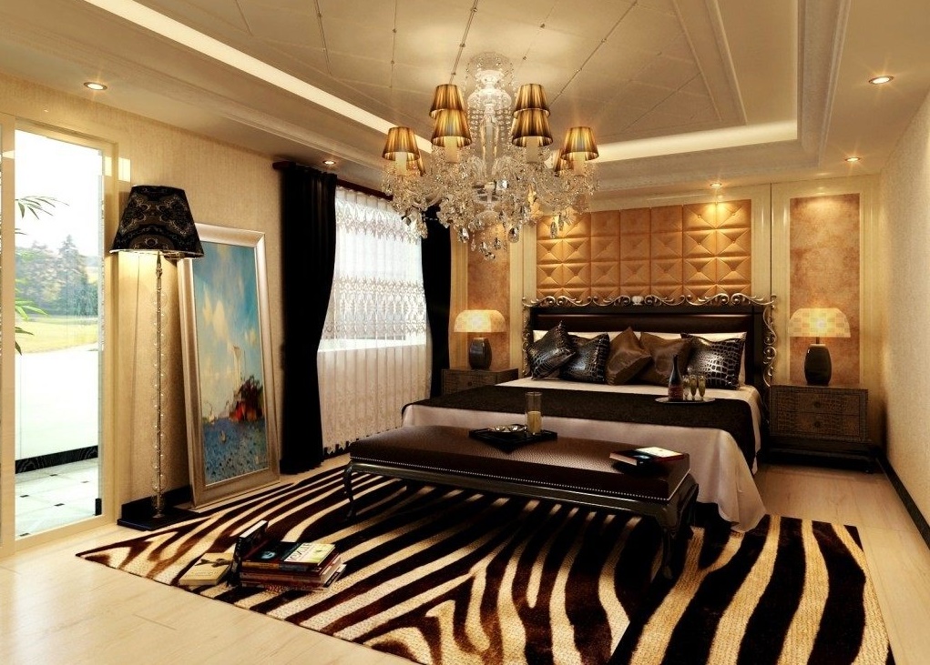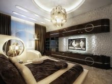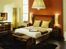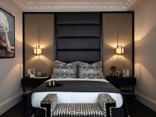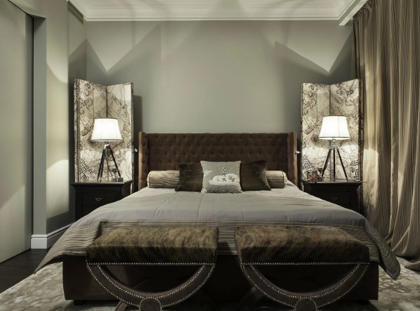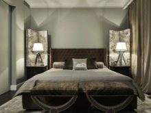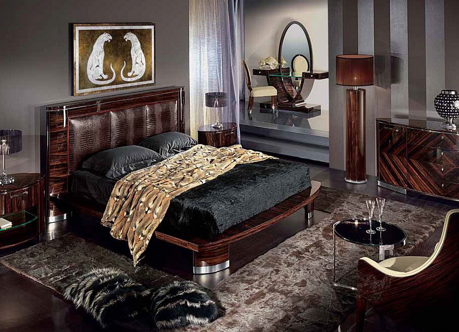 - Art Deco. Massive Einrichtungsgegenstände passen hier ideal: ein Bett mit geschnitzter Rückenlehne, große, sperrige Nachttische und der gleiche Schminktisch. Abgerundet wird das Ensemble durch eine Stehlampe oder Wandleuchte mit Bronzedetails.