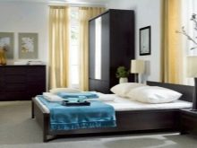 - Es sollte nicht viele Möbelstücke in dunklen Farben geben. Maximal erlaubt: Bett, Kleiderschrank, Nachttisch. Sie können einen Frisiertisch oder Stuhl in die Liste aufnehmen, aber nur, wenn der Raum ziemlich groß ist.