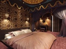 - Orientalisch. Dies bezieht sich auf seine japanische Richtung. In diesem Fall haben Sie die Wahl zwischen ebenholzschwarzen oder dunkelbraunen Betten oder Sofas. Helle Akzenteinsätze sind in der Einstellung erlaubt.