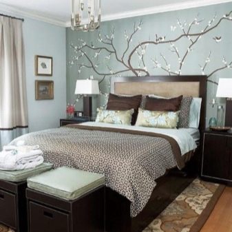 - Wenn der Raum nicht mit Möbeln in dunklen Farbtönen überladen ist, wird es gemütlich. Es wird angenehm sein, darin zu bleiben und einzuschlafen. Tiefe Töne haben eine beruhigende Wirkung auf eine Person.