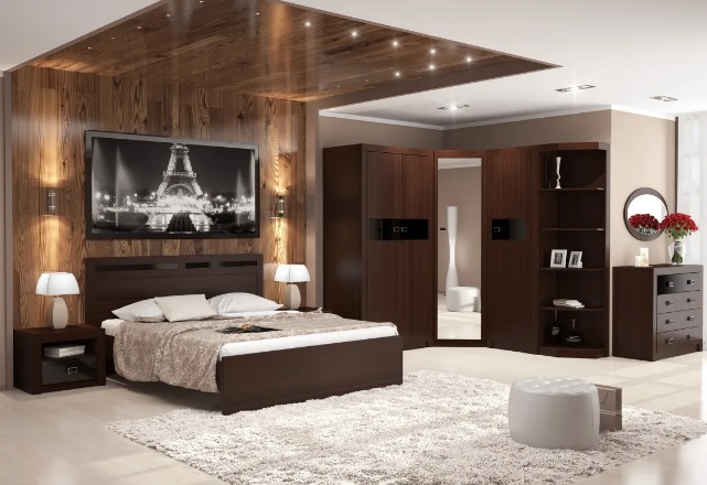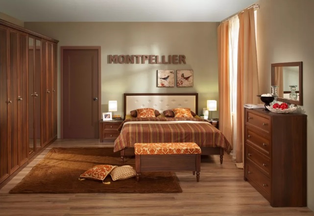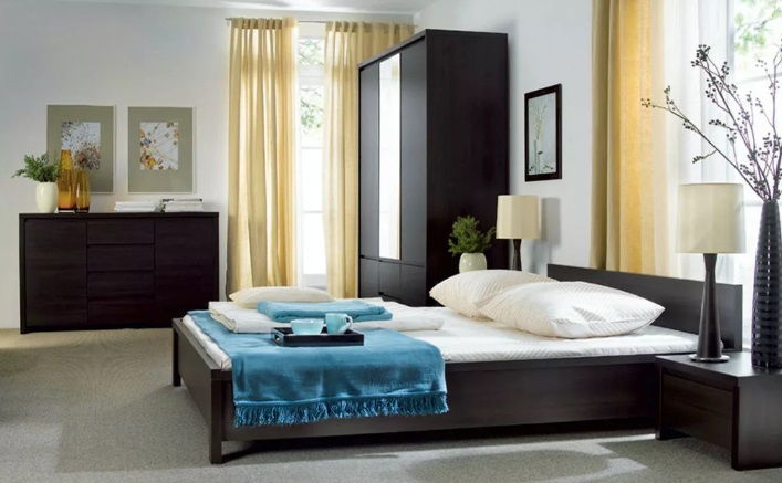 Die Farbpalette an dunklen Farbtönen, die für die Herstellung von Schlafzimmersets verwendet werden, ist nicht zu groß. Am beliebtesten sind vier Töne.