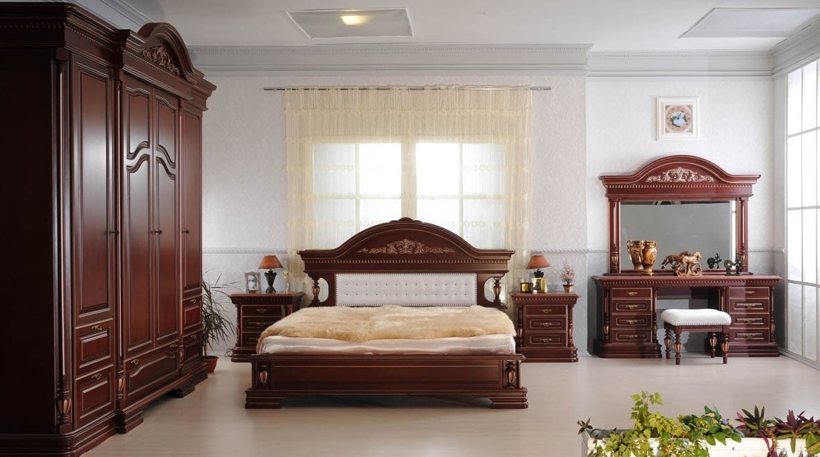 - Klassisch. Hier gibt es nichts Überraschendes. Es genügt, an die Einrichtung der Schlafzimmer des Palastes zu erinnern. Es gab immer Möbelelemente in dunklen Farben. Für eine bessere Interpretation des klassischen Stils eignen sich Produkte mit geschnitzten Details.