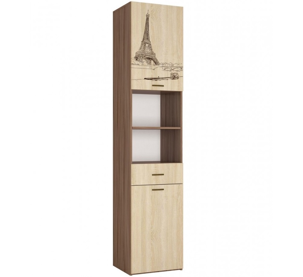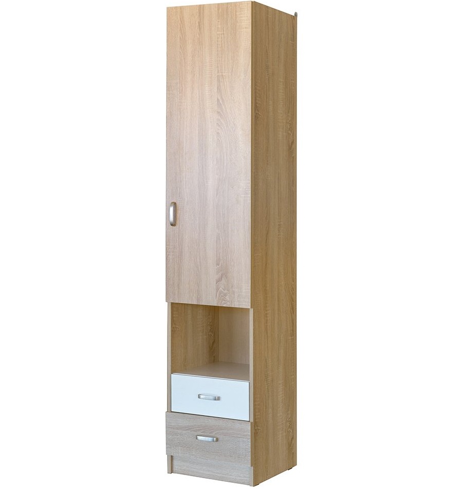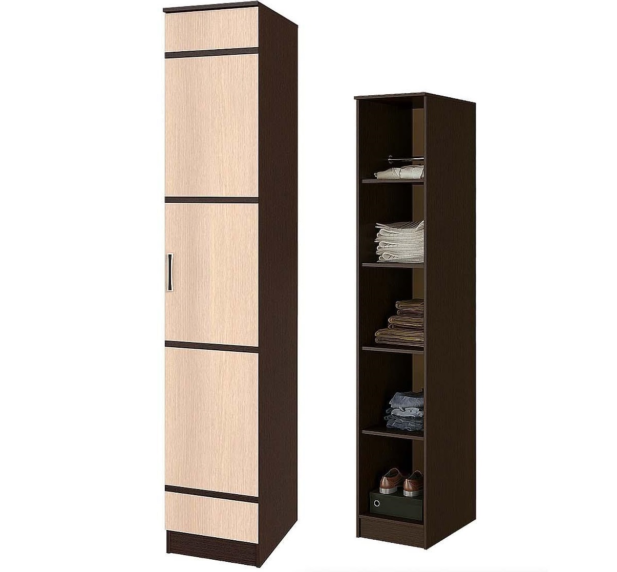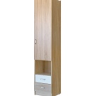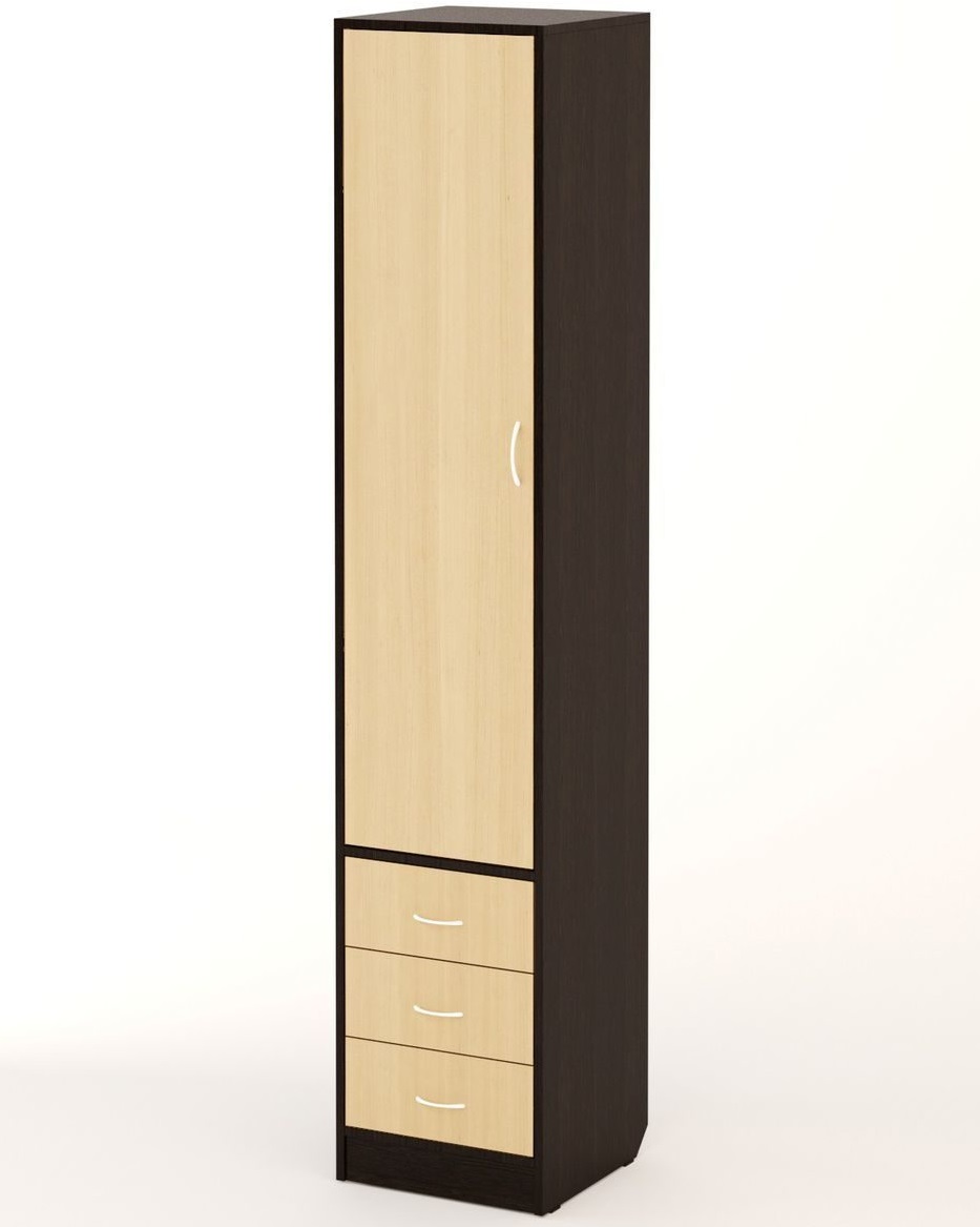 - Das Federmäppchen, dessen Fronten in Weiß- und Brauntönen gehalten sind, findet seinen Platz neben einem Einzelbett aus hellbraunem MDF. Diese Kombination wird harmonisch vor dem Hintergrund von Wänden mit hellbraunem Finish sowie einem hellbraunen Holzboden aussehen.
