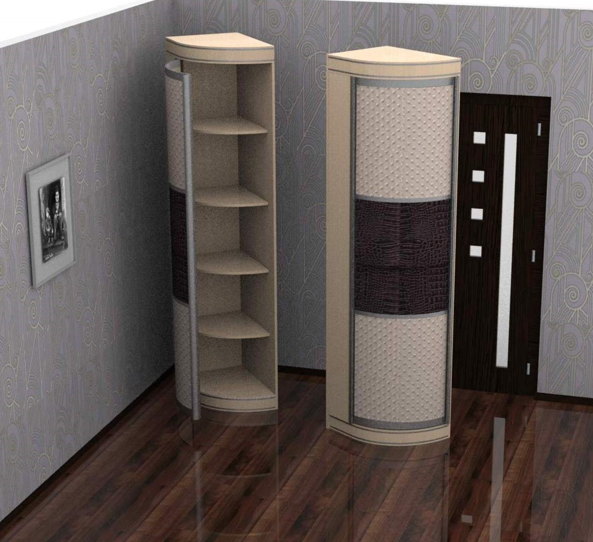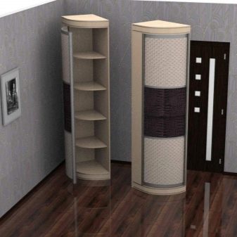 - Radius... Solche Schränke-Bleistiftetuis sind nur konvex. Sie sehen sehr originell und teuer aus. Wenn Sie das Schlafzimmer dekorieren und interessante Notizen hinzufügen möchten, ist die Radius-Garderobe eine gewinnende Lösung. Darüber hinaus zeichnen sich solche Möbel durch eine hohe Funktionalität aus.