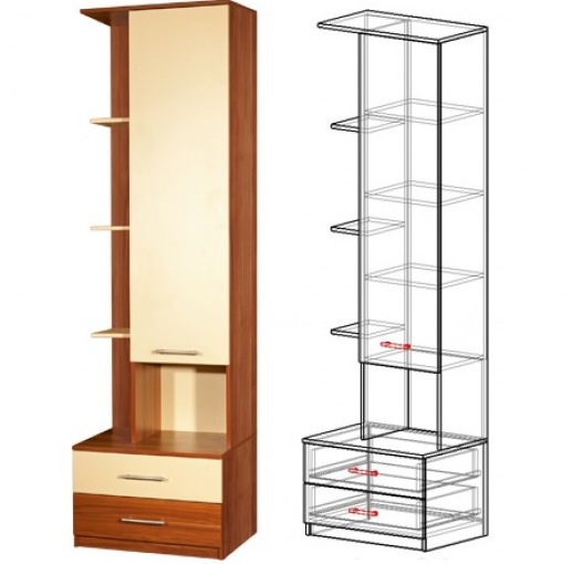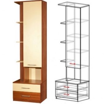 - Kisten... Federmäppchen sind nicht nur mit Regalen ausgestattet, sondern auch mit praktischen Schubladen. Sie befinden sich normalerweise an der Unterseite der Möbelstruktur. Wenn die Kisten oben sind, wird es äußerst umständlich, Dinge herauszuholen.